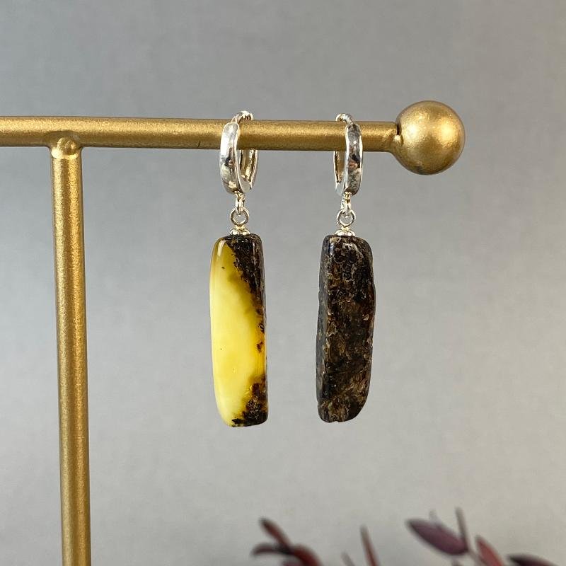 Gintariniai auskarai yra pailgos, elegantiškos formos, subtiliai pabrėžiančios kaklo liniją. Šilta margo spalva suteikia prabangos pojūtį ir puikiai dera tiek prie kasdienės aprangos, tiek prie vakarinio įvaizdžio.