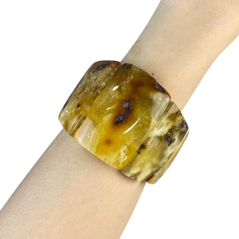 Eksliuzyvinė ir masyvi prabangaus margo gintaro apyrankė. Ši gintarinė apyrankė gali būti puiki jūsų įvaizdžio ir stiliaus detalė.