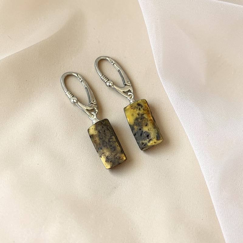 Elegantiškas ir stilingas matinio samaninio gintaro auskarų ir pakabuko rinkinys. Šis gintarinis rinkinys išskirtinai sukurti stilingai ir madingai moteriai.