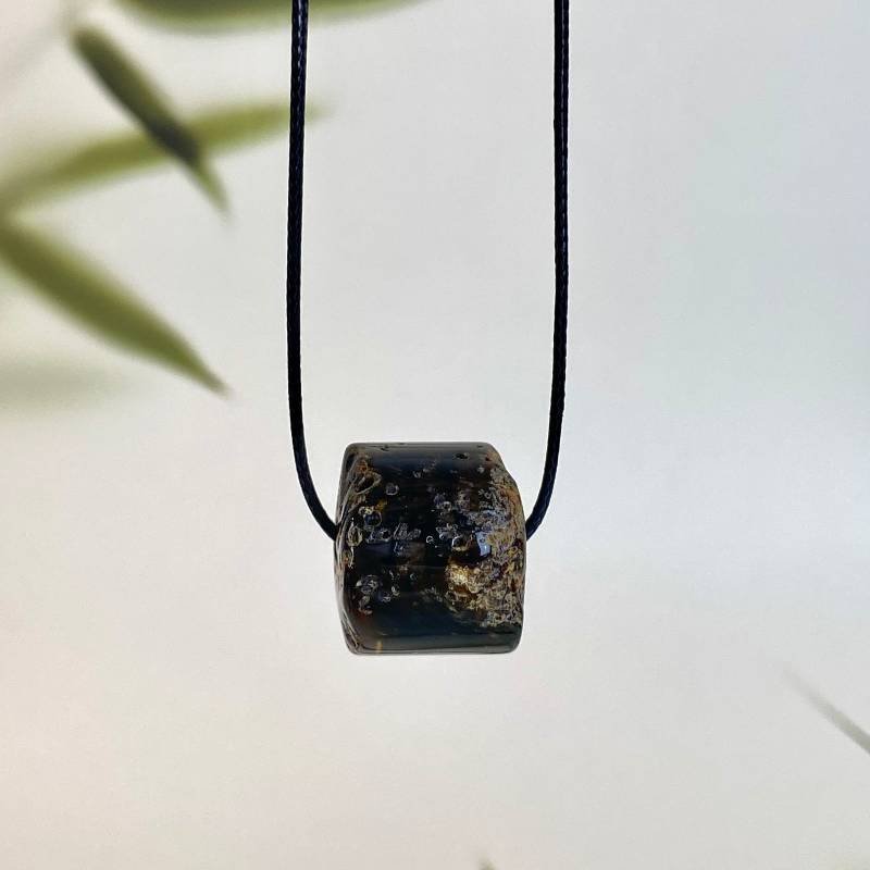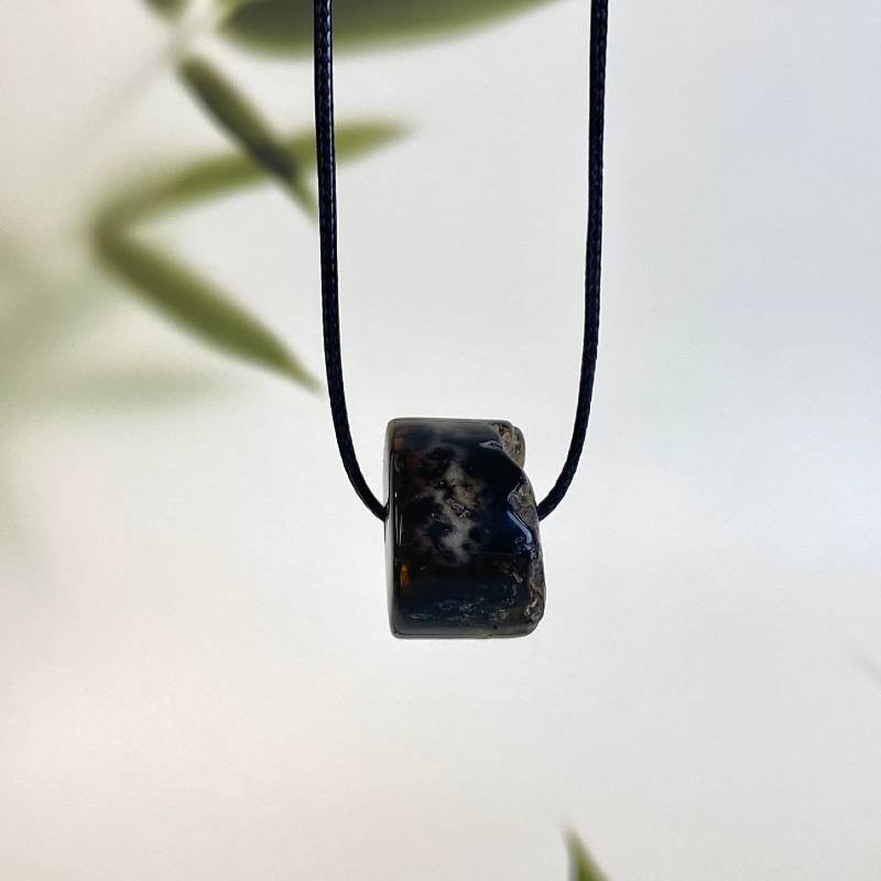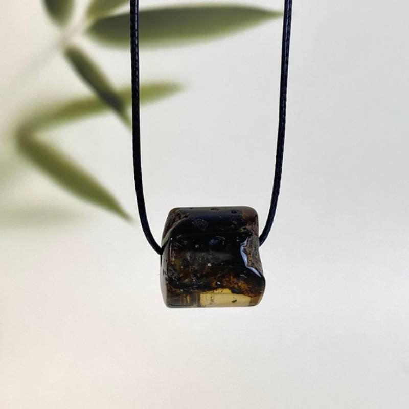 Įmantrus tamsaus samaninio gintaro vyriškas pakabukas. Šis gintarinis kaklo papuošalas jūsų stiliui ir aprangai suteiks gyvumo ir mados pojūtį.