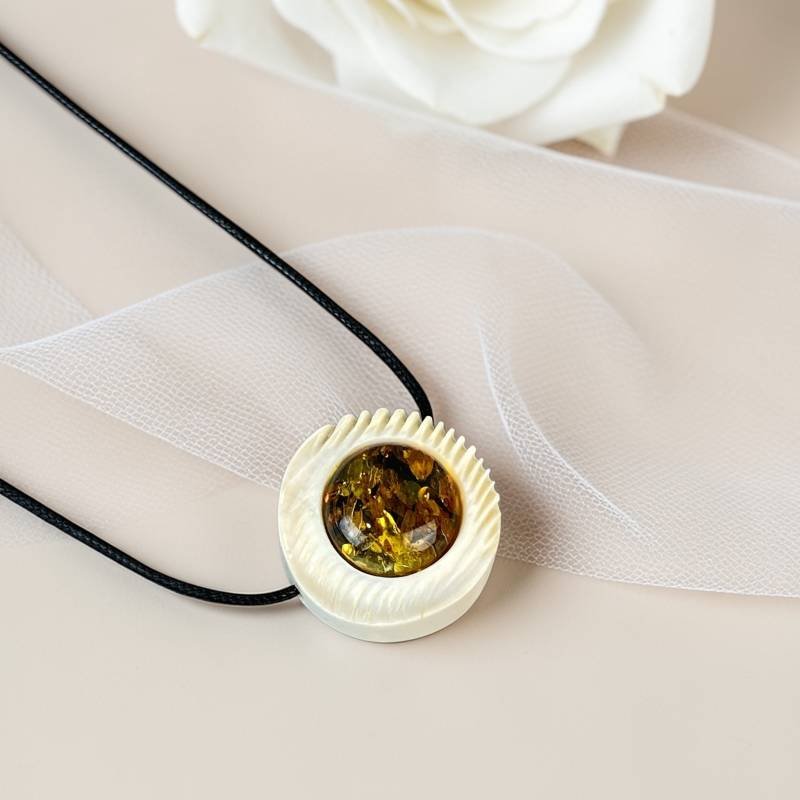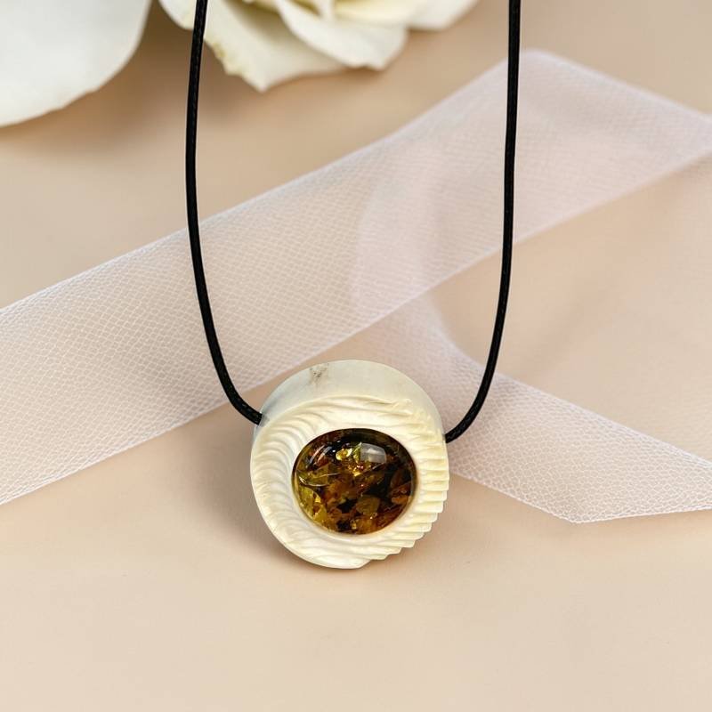 Įspūdingas ir stilingas gintaro ir briedžio rago kaklo pakabukas. Šis gintarinis kaklo pakabukas gali būti puiki jūsų įvaizdžio detalė.