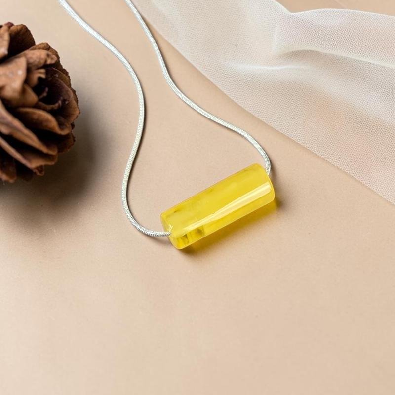 Įspūdingas medaus ir gelsvos spalvos gintaro pakabukas. Pajuskite raminančią Baltijos jūros energiją su šiuo unikaliu, gintaro pakabuku. Tai modernus papuošalas, kuriame meistriškai atskleidžiamas natūralus gintaro grožis ir įvairovė.