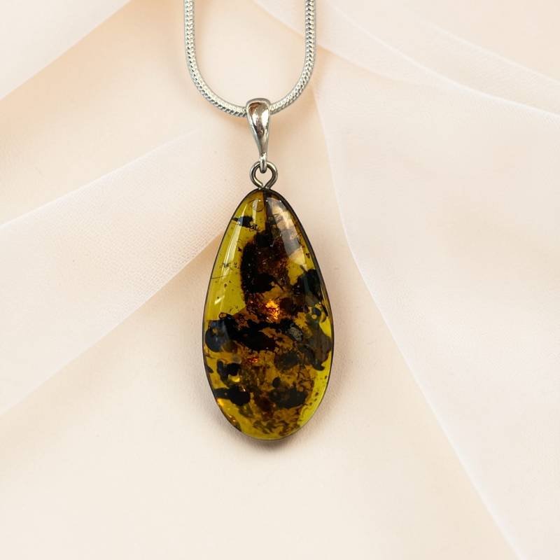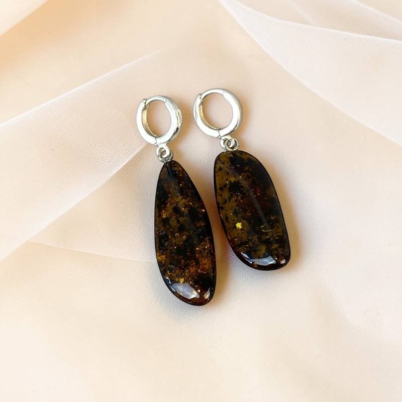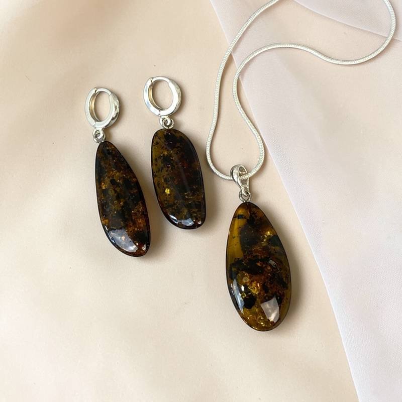 Kerintis ir stilingas blizgus samanininio gintaro rinkinys. Šis gintarinis rinkinys išskirtinai sukurti stilingai ir madingai moteriai.