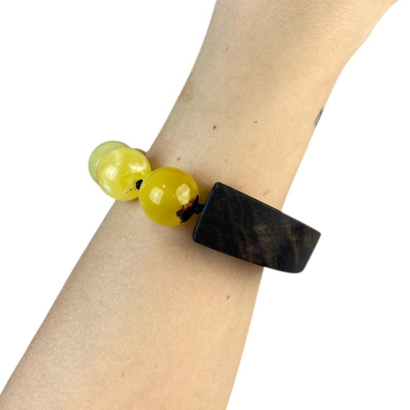 Moderni ir išskirtinė juodojo ąžuolo ir gintaro apyrankė. Ši gintarinė apyrankė gali būti puiki jūsų įvaizdžio ir stiliaus detalė.