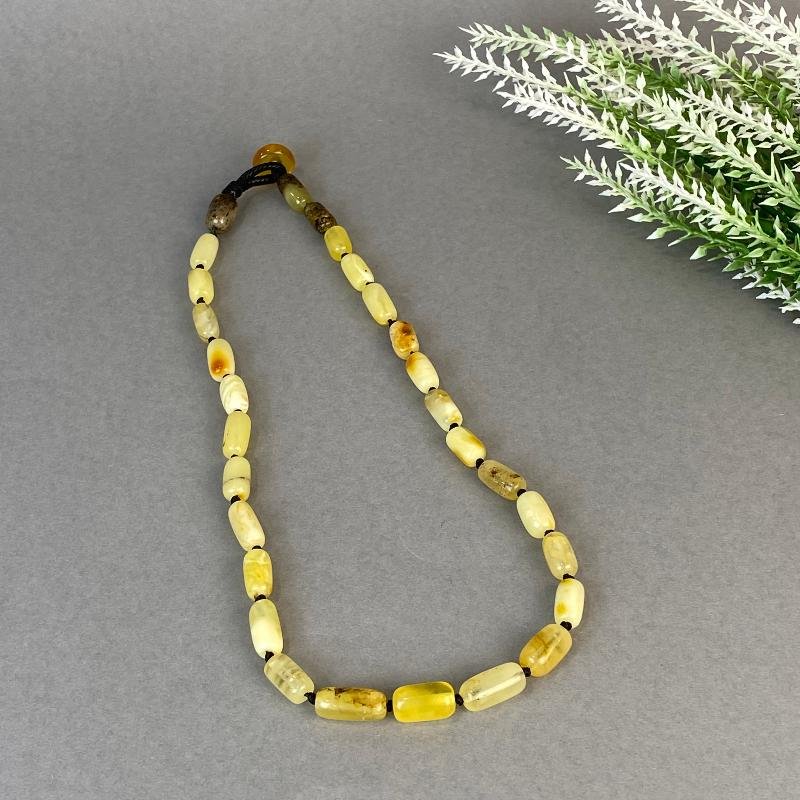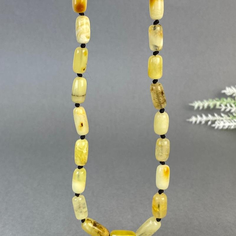 Modernus ir stilingas statinaičių formos margo gintaro vėrinys. Šis gintarinis kaklo vėrinys gali būti puiki jūsų įvaizdžio detalė.