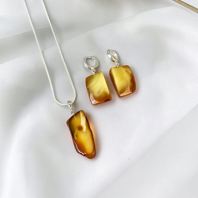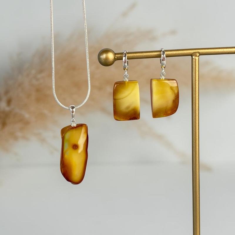 Nuostabus švelniai pereinančios gelsvos spalvos gintaro rinkinys. Šis gintarinis rinkinys išskirtinai sukurti stilingai ir madingai moteriai.