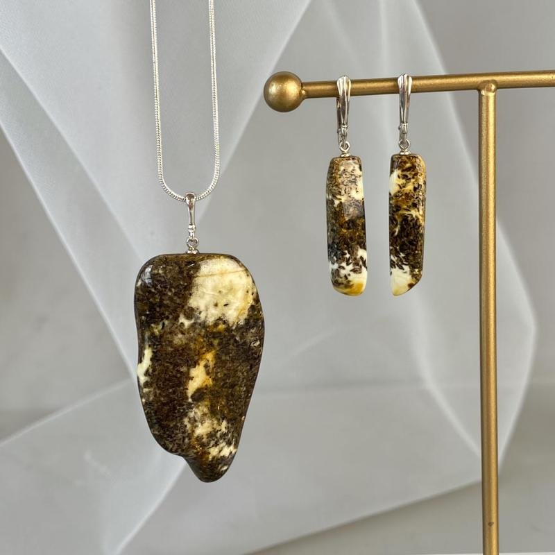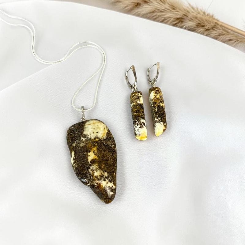 Prabangus ir stilingas margo blizgaus gintaro rinkinys. Šis gintarinis rinkinys išskirtinai sukurti stilingai ir madingai moteriai.
