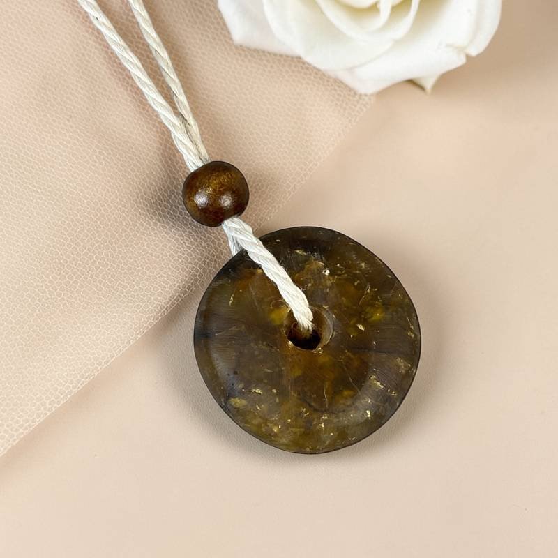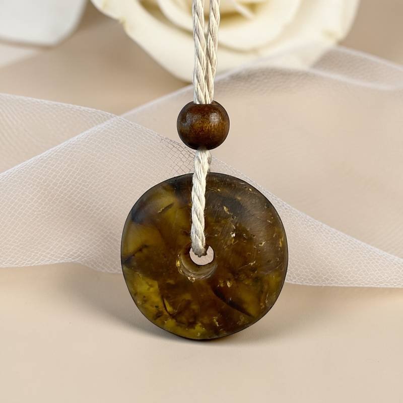 Rafinuotas ir stilingas matinio gintaro kaklo pakabukas amuletas ant lininės virvelės. Šis gintarinis kaklo pakabukas gali būti puiki jūsų įvaizdžio detalė.