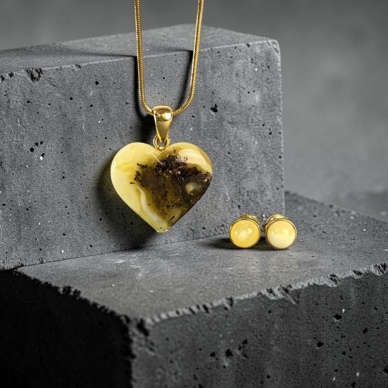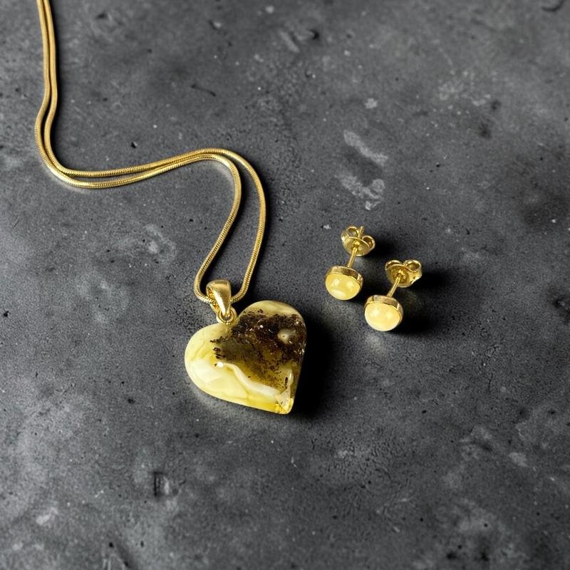 Romantiškas ir minimalistinis margo gintaro rinkinys. Šis gintarinis rinkinys išskirtinai sukurti stilingai ir madingai moteriai.