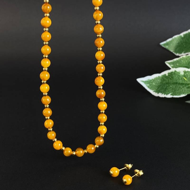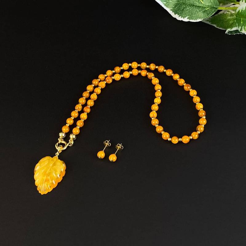 Romantiškas ir subtilus karamelės spalvos gintaro rinkinys. Šį nuostabų rinkinį sudaro auskarai – vinukai, vėrinys ir pakabukas. Galite nešioti įvairiais būdais. Su šiuo nuostabiu rinkiniu jausitės prašmatniai ir stilingai.