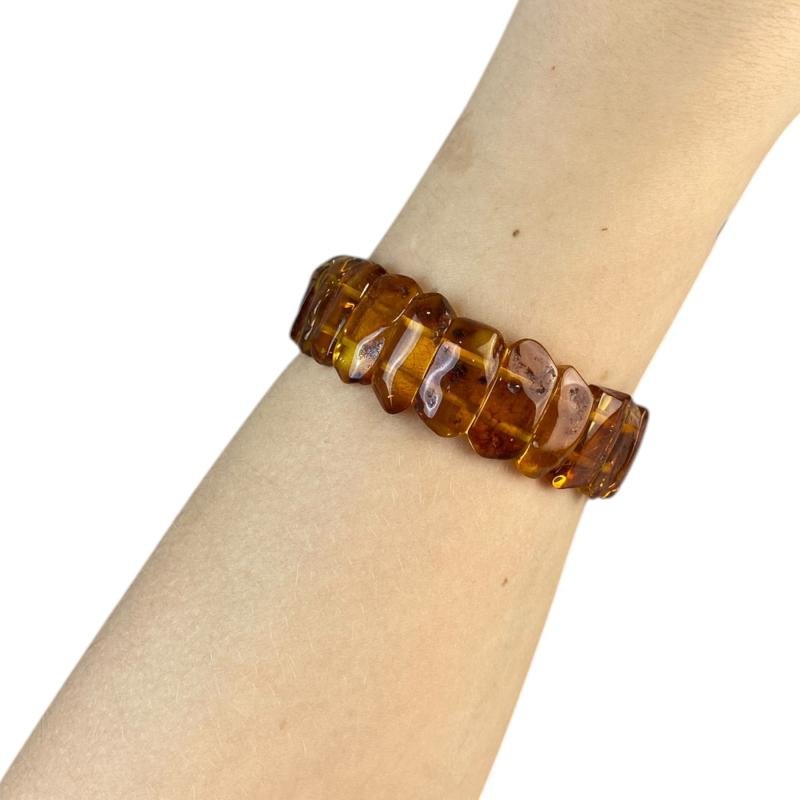 Stilinga ir moderni blizgaus medaus spalvos gintaro apyrankė. Ši gintarinė apyrankė gali būti puiki jūsų įvaizdžio ir stiliaus detalė.