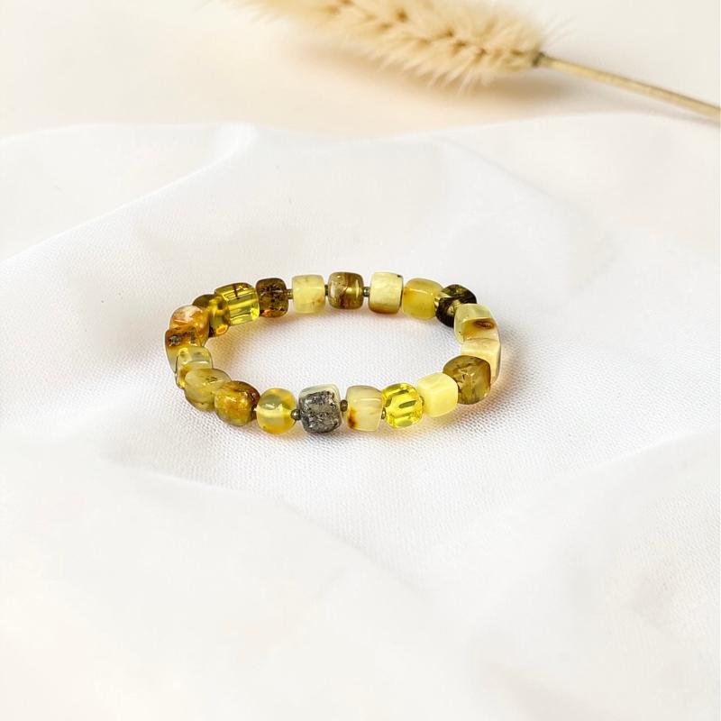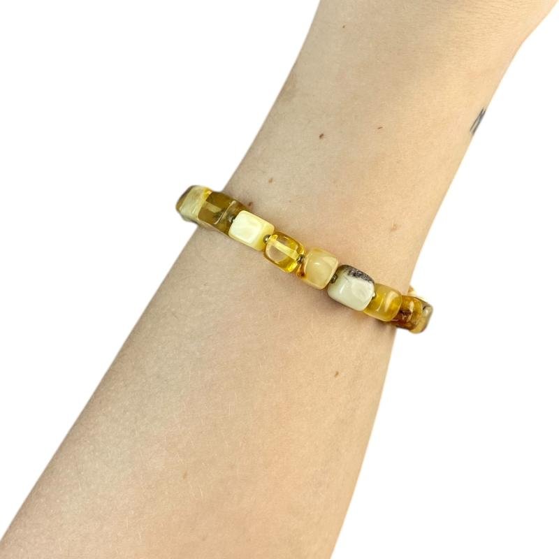 Stilinga įvairiaspalvio gintaro kubelių apyrankė. Ši gintarinė apyrankė gali būti puiki jūsų įvaizdžio ir stiliaus detalė.