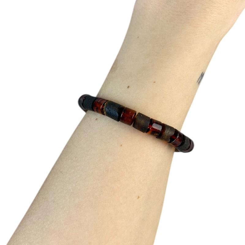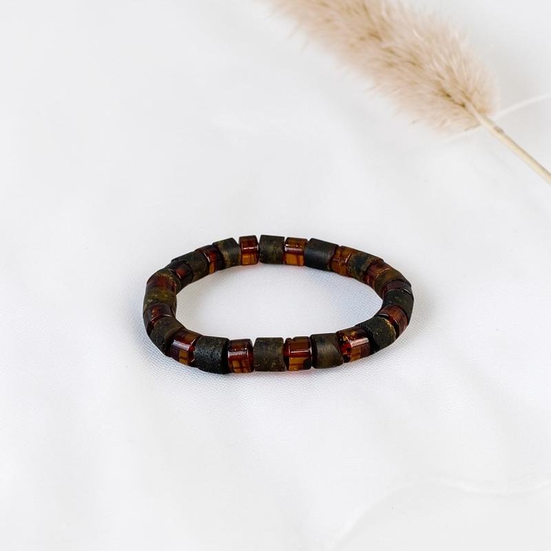 Stilinga tamsaus matinio ir blizgaus vyšnios spalvos gintaro apyrankė. Ši gintarinė apyrankė gali būti puiki jūsų įvaizdžio ir stiliaus detalė.