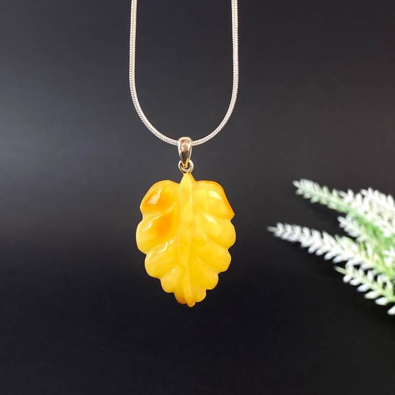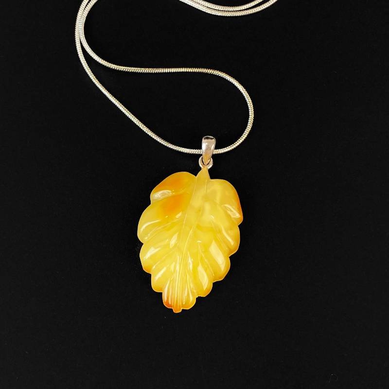 Stilingas graviruoto gelsvo gintaro kaklo pakabukas. Šis gintarinis kaklo papuošalas gali būti puikia jūsų įvaizdžio detalė.