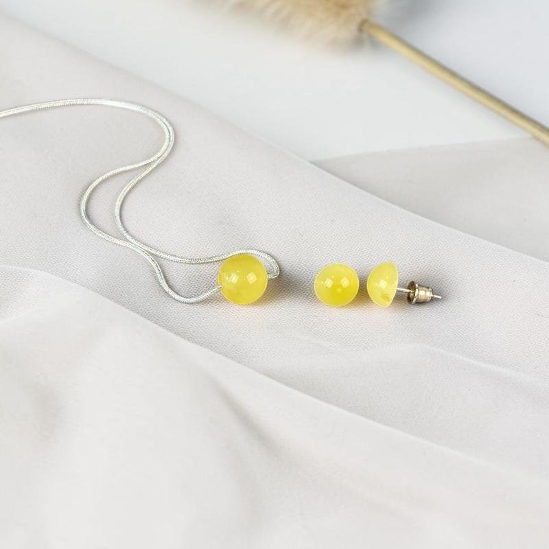 Stilingas ir minimalistinis gelsvo gintaro rinkinys. Šis gintarinis rinkinys išskirtinai sukurti stilingai ir madingai moteriai.