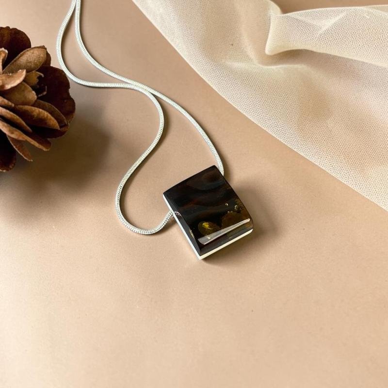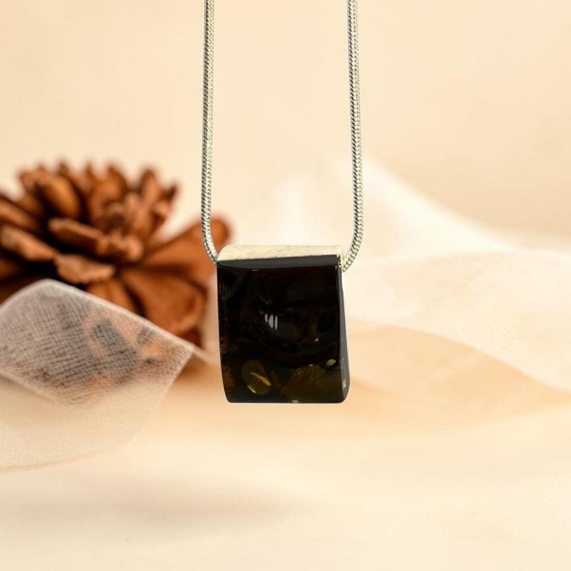 Stilingas ir prabangus tamsaus gintaro ir briedžio rago pakabukas. Šis rankų darbo pakabukas – tai ne tik papuošalas, bet ir istoriją pasakojantis aksesuaras, sujungiantis senovines medžiagas su minimalistine, „švaria“ estetika.