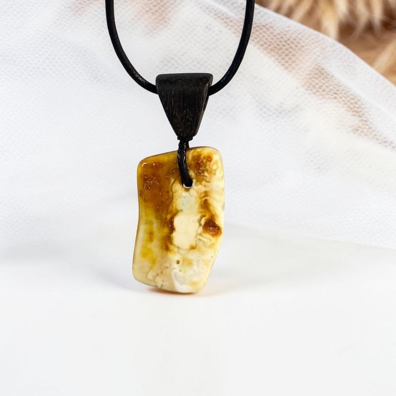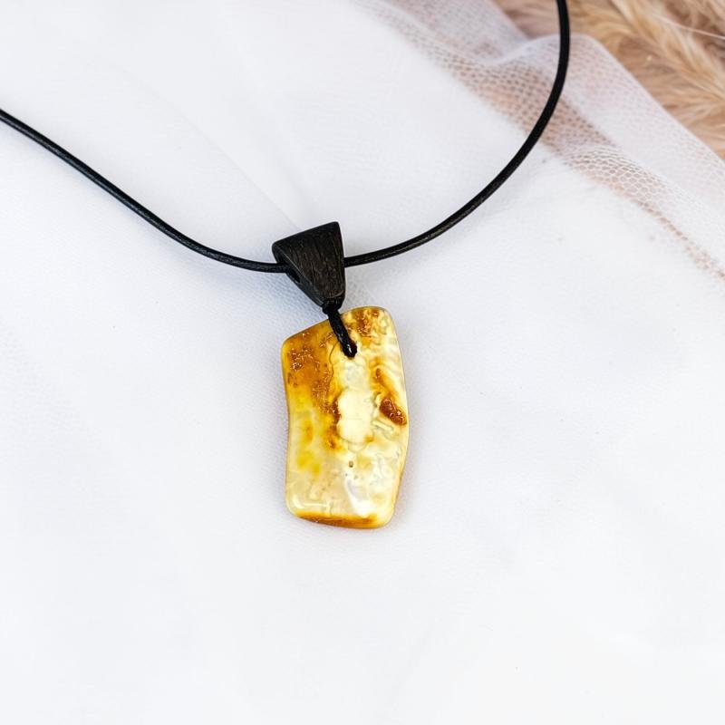 Stilingas margo gintaro su juodojo ąžuolo detale pakabukas. Šis gintarinis kaklo pakabukas gali būti puiki jūsų įvaizdžio detalė.