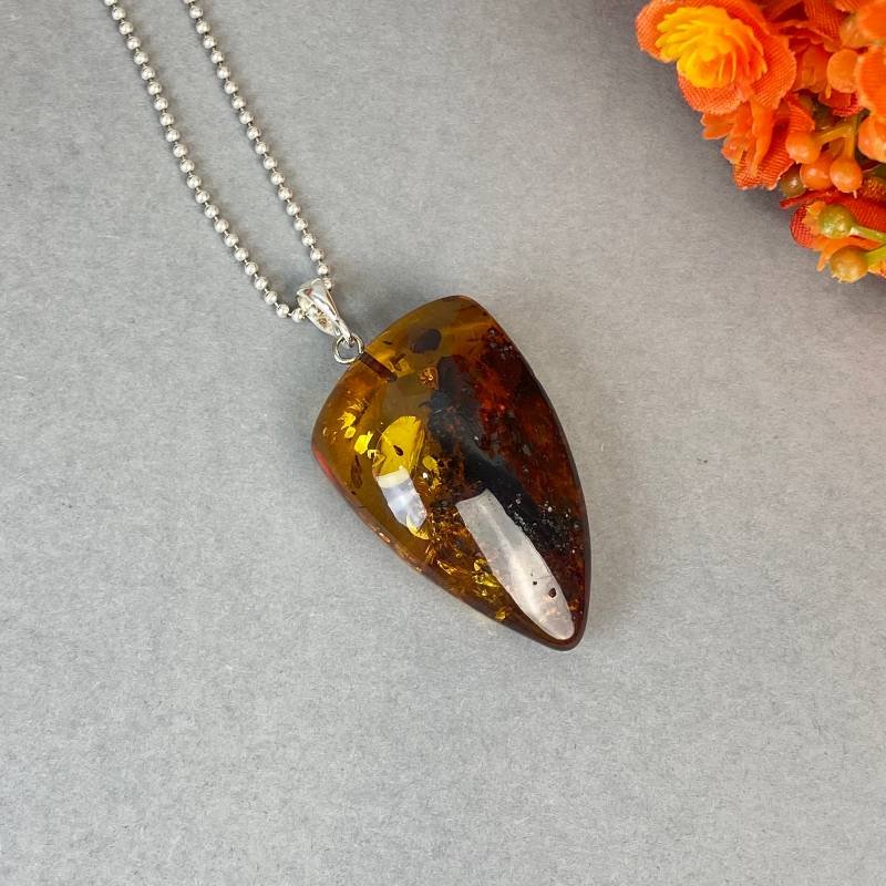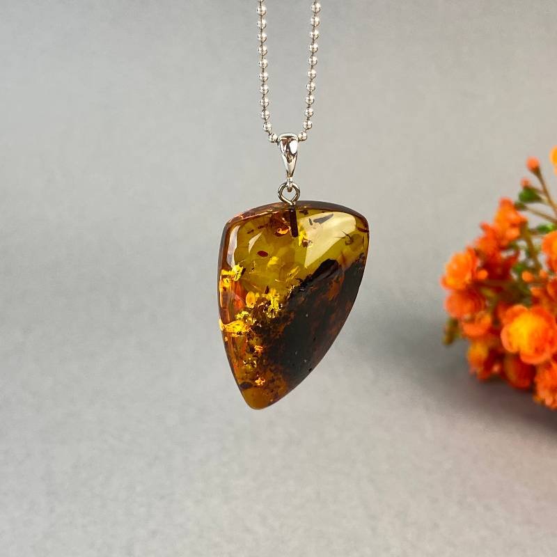 Stilingas skaidrios medaus ir vyšnios spalvos gintaro kaklo pakabukas. Šis gintarinis kaklo papuošalas gali būti puikia jūsų įvaizdžio detalė.