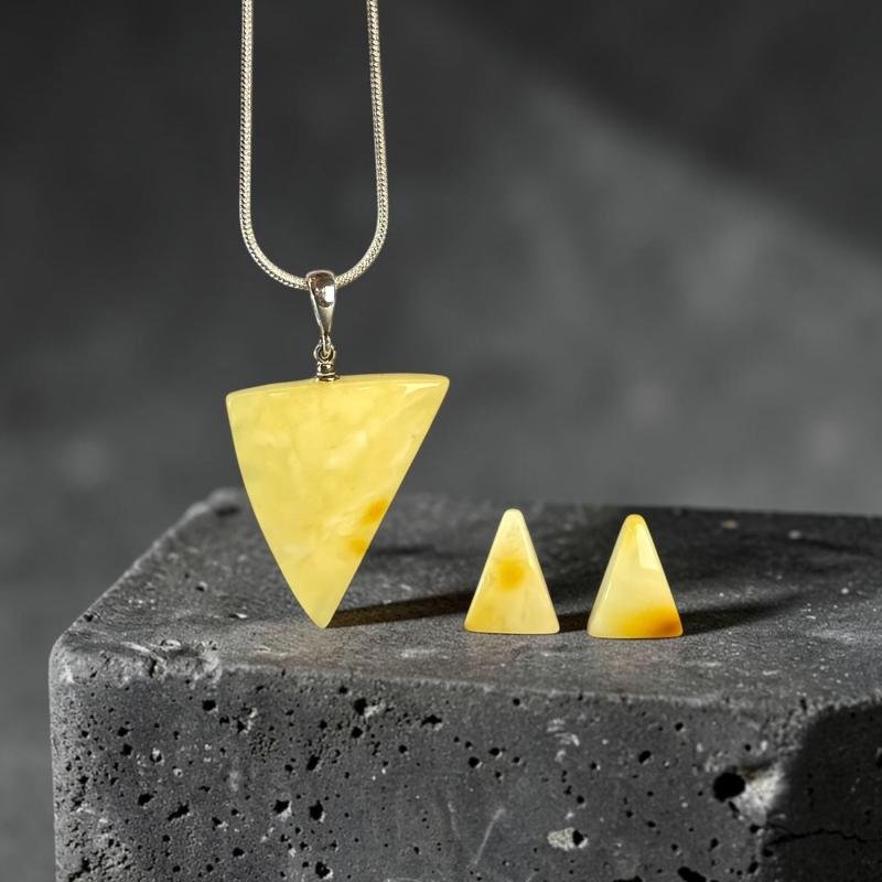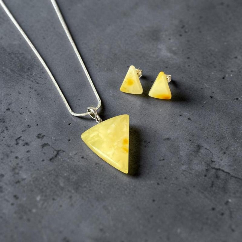 Subtilus ir modernus geltonos spalvos gintarinis rinkinys. Šis gintarinis rinkinys išskirtinai sukurti stilingai ir madingai moteriai.