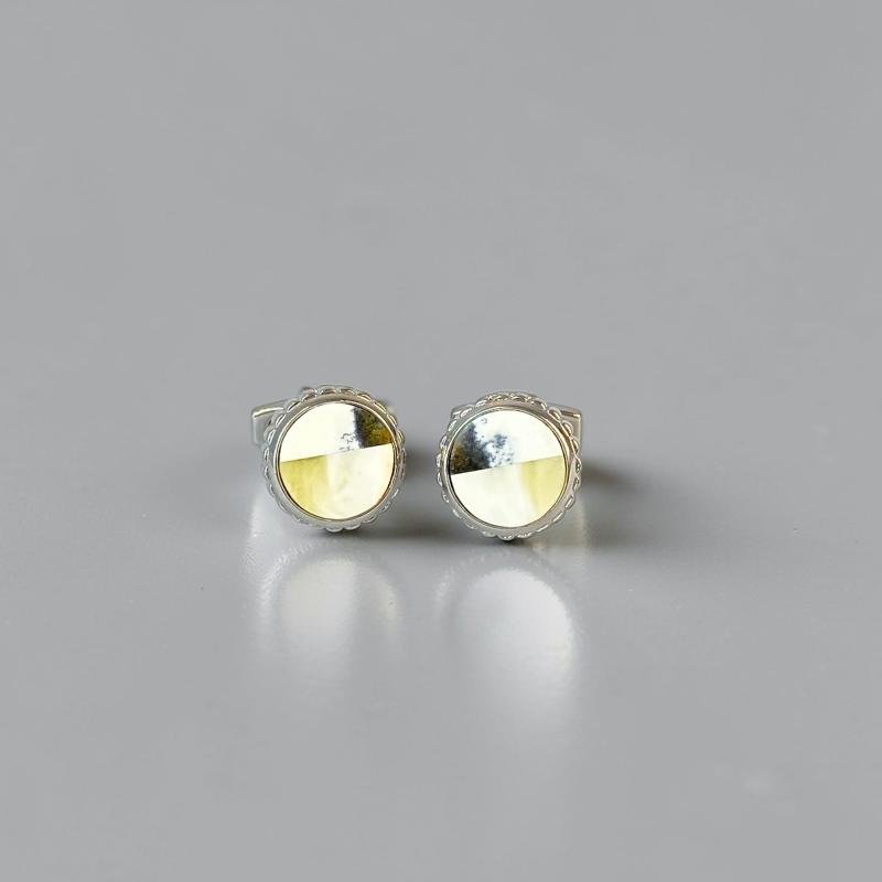 Šios klasikinės apvalios formos sąsagos išsiskiria subtiliu rėmeliu ir unikaliu gintaro raštu. Kiekvienas gintaro fragmentas yra natūralus, todėl sąsagos pasižymi išskirtiniu charakteriu ir nėra dviejų vienodų porų.